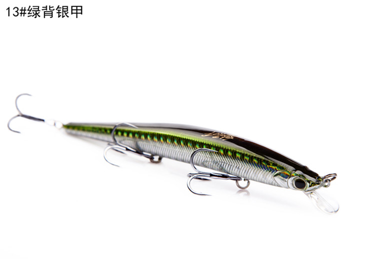 翘嘴作为国内分布最为广泛的掠食性鱼类,以其超快的游速,强劲的拉力成为广大钓友的梦幻路亚目标鱼种。基于翘嘴的猎食习性,此款妖刀S110F慢浮米诺以自然水域翘嘴的饵鱼——小白条为设计灵感。游动时完全模仿出这些原生态饵鱼的逼真游姿,抽动竽尖,鱼饵不规则的侧摆,模仿出小鱼受伤的泳姿,刺激翘嘴的攻击。